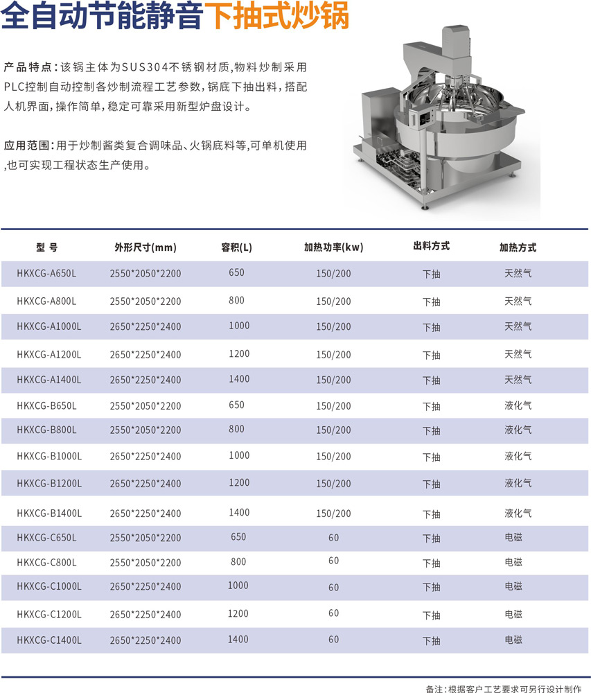 該鍋主體為SUS304不銹鋼材質(zhì),物料炒制采?PLC?動(dòng)控制各炒制流程?藝參數(shù),液壓翻轉(zhuǎn)出料,搭配?機(jī)界?, 操作簡(jiǎn)單,穩(wěn)定可靠,采?新型爐盤設(shè)計(jì)。